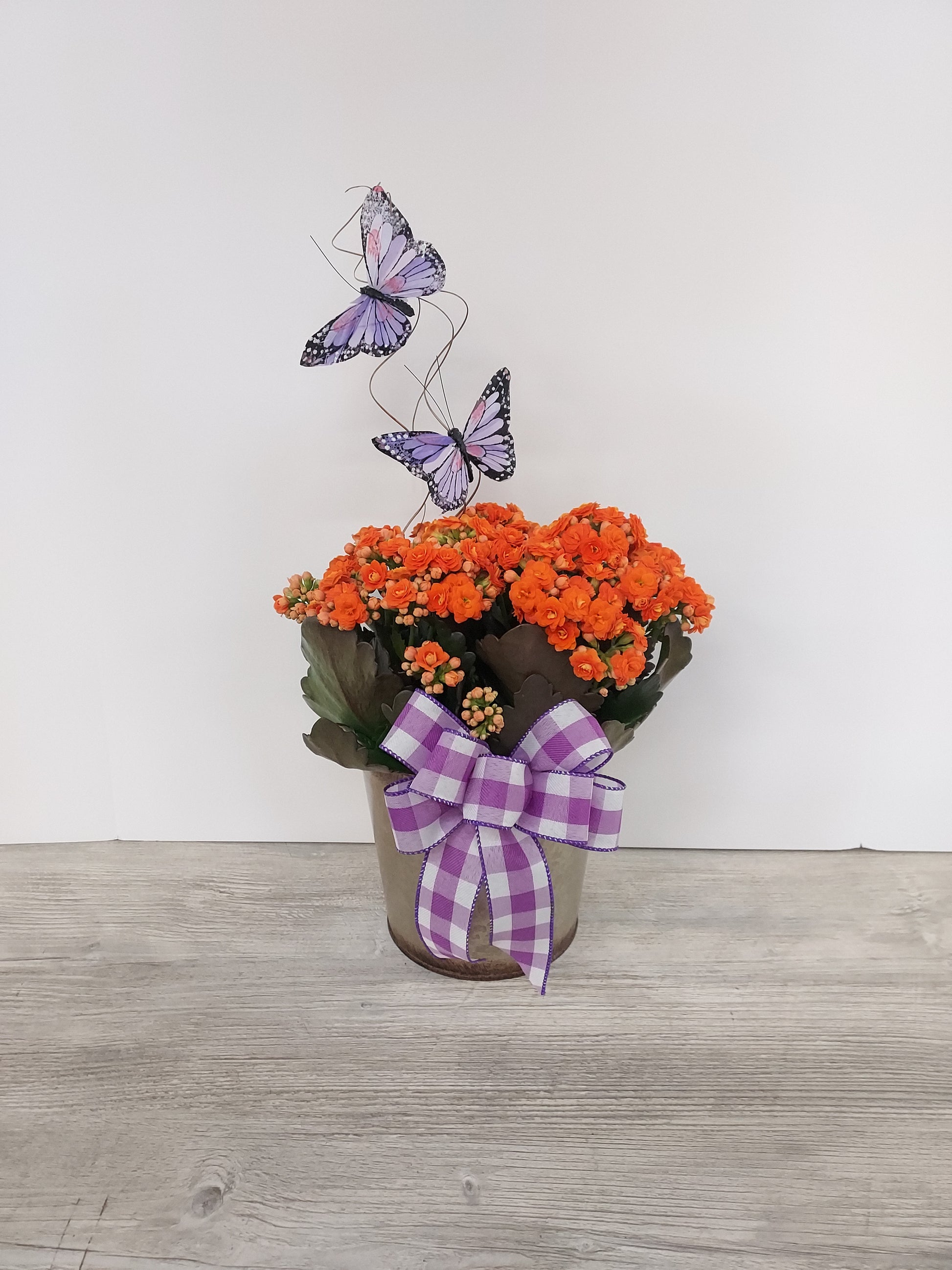 This seasonal blooming plant features colorful decorations and is a great way to send your warmest regards. Plant choices and color may vary from picture.